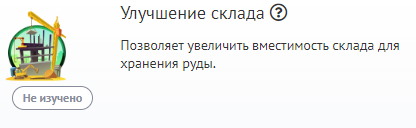Бонус «Улучшение склада» позволяет Вам увеличить вместимость склада и добывать больше руды.