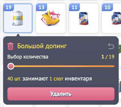После клика по кнопке "Удалить" товар исчезнет и место в инвентаре станет больше!