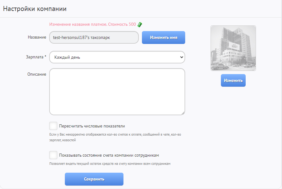 В настройках компании вы можете бесплатно изменить логотип, описание и платно изменить названия компании.