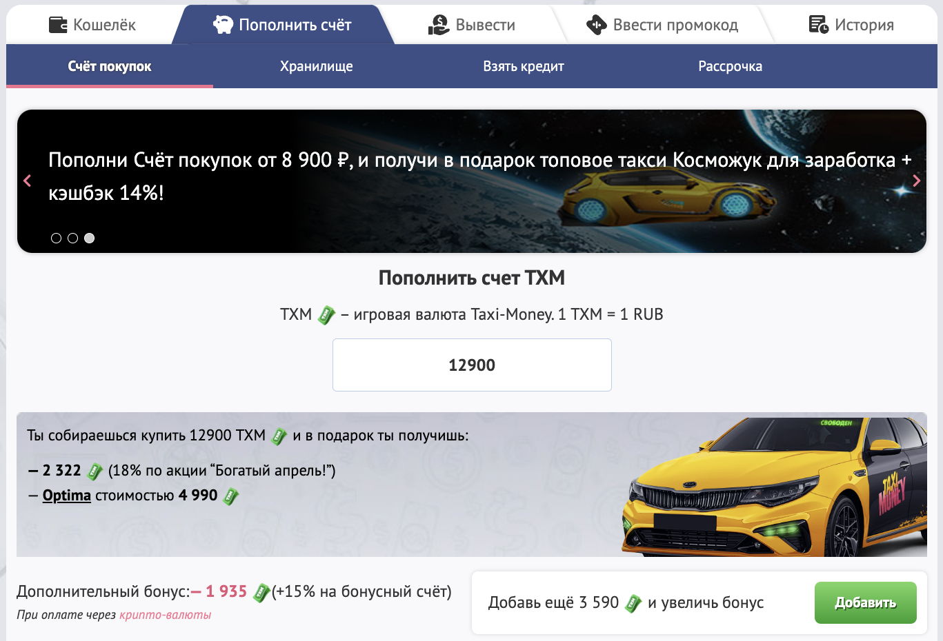 Você pode pegar um táxi GRATUITAMENTE depositando sua Conta de Compra usando os sistemas de pagamento fornecidos.