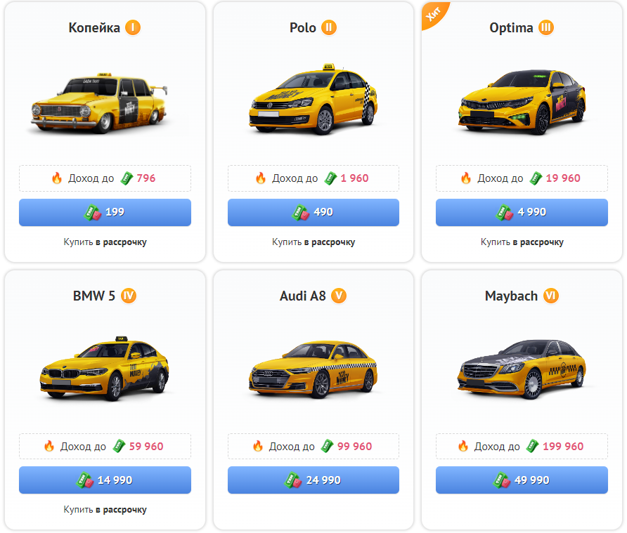 Além disso, na Loja estão disponíveis 6 carros com preços de 199 THM a 49.990 THM. Você pode pagar sua compra na Conta de Compra usando os sistemas de pagamento fornecidos ou trocar fundos da Conta de Passageiro.